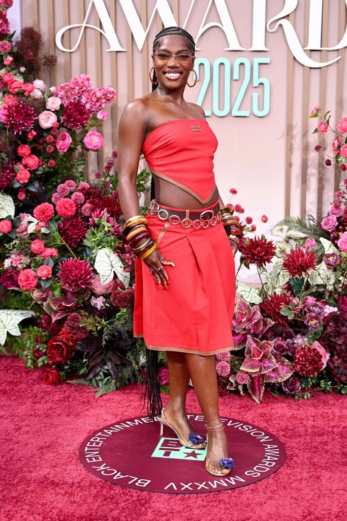 For instance, at the 2025 BET Awards, she wore a futuristic metallic dress with a sleek, sculptural shape that hugged her body in all the right places. The reflective material caught the light from every angle, giving her an almost ethereal glow, while her bold, platinum blonde bob and graphic eyeliner added to the overall edgy, high-fashion vibe.